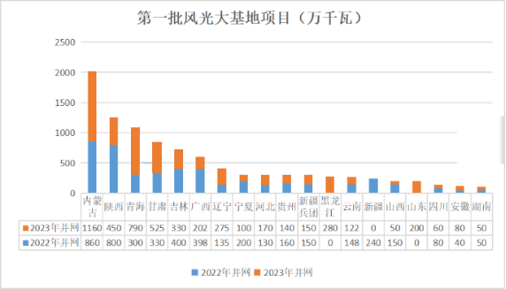 2021年12月底,第一批大型風(fēng)電、光伏基地項目清單公開,覆蓋內(nèi)蒙古、山西、青海等19個省區(qū),總規(guī)模97.05GW。