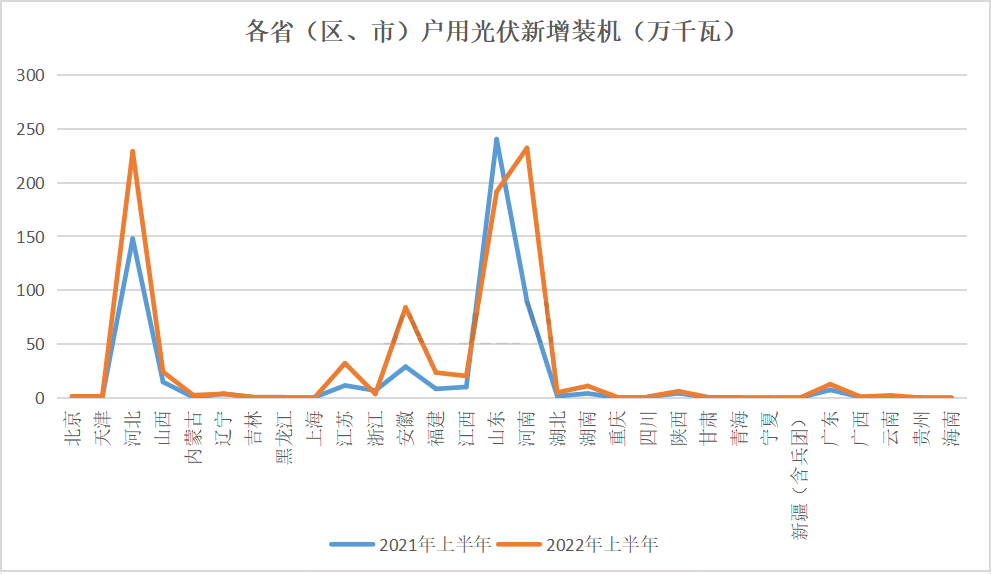 而今年上半年,戶用光伏新增裝機8.914GW,同比實現(xiàn)增長51%。然而,變化更令市場關(guān)注:一向霸屏的山東市場交出榜首位置,此外,浙江、上海、北京市場的戶用新增裝機均同比下降。