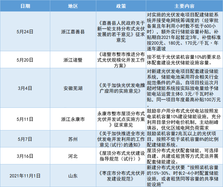 而非戶用分布式光伏電站,配置儲能的要求則快速擴大。此前,據(jù)北極星統(tǒng)計,截至5月底,已有山東、河北、江蘇、安徽、浙江等多地出臺或鼓勵或強制分布式光伏配置儲能的政策要求。