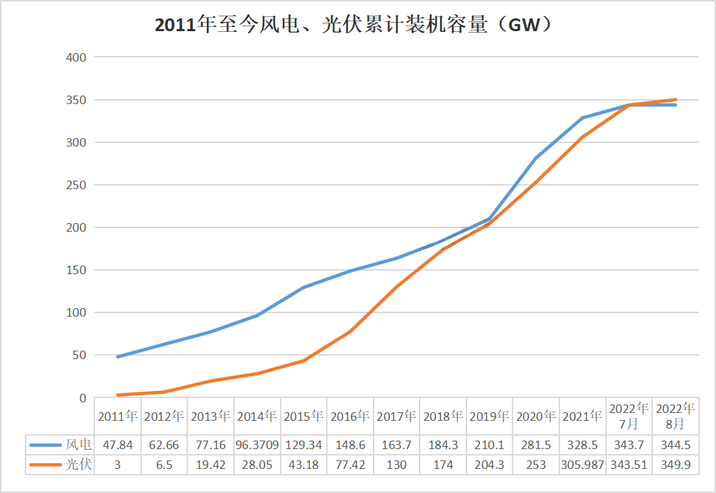 進入全面平價時代,2022年1~8月風(fēng)光新增裝機同比增長10%,而同期光伏新增裝機同比增長高達106%。