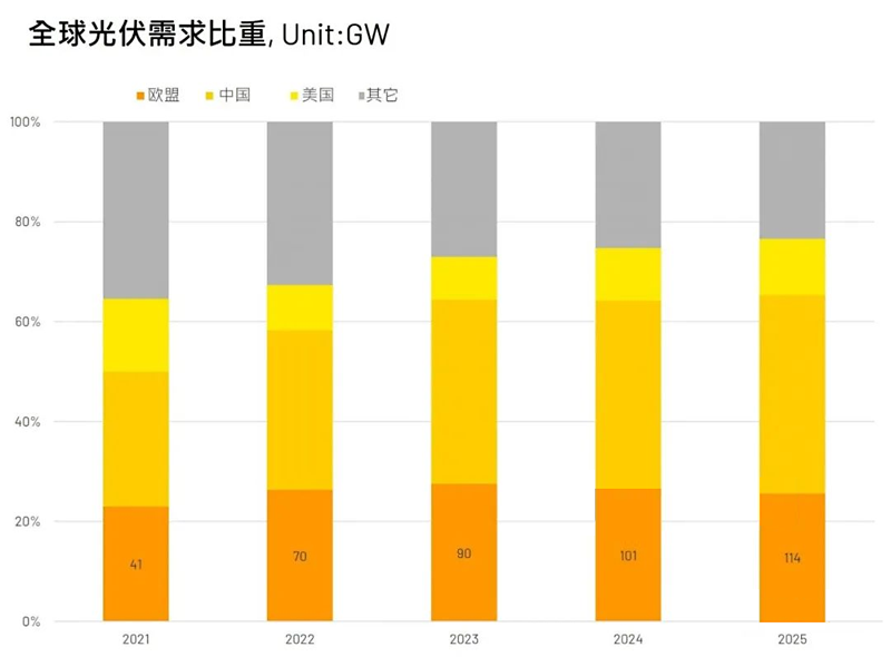 在需求方面,烏俄戰(zhàn)爭(zhēng)造成的傳統(tǒng)能源價(jià)格飆漲加快了歐盟對(duì)再生能源的布局,提高歐盟在光伏需求的比重。同時(shí),歐盟境內(nèi)實(shí)施的碳排放規(guī)范正愈來(lái)愈嚴(yán)格,并且計(jì)劃于2023年開始試行碳邊境調(diào)整機(jī)制 (CBAM)、2027年正式課征。盡管CBAM初期規(guī)劃著重在高碳排產(chǎn)業(yè),但預(yù)期后續(xù)會(huì)依照產(chǎn)業(yè)碳排量多寡擴(kuò)大涵蓋范圍,光伏產(chǎn)業(yè)由于耗電量高,勢(shì)必位列其中,目前已有越來(lái)越多地區(qū)祭出相關(guān)的規(guī)定。例如,法國(guó)在公共招標(biāo)案上會(huì)對(duì)組件的碳排放進(jìn)行要求,碳足跡的最低標(biāo)準(zhǔn)為750kg CO?/kW且須有證明,若無(wú)法符合則無(wú)法參與公共采購(gòu)招標(biāo)。另外,法國(guó)能源管理委員會(huì)(CRE)也針對(duì)100-500kW的屋頂型項(xiàng)目祭出相關(guān)稅令,要求使用低碳足跡的組件,CRE4標(biāo)準(zhǔn)的認(rèn)證為小于550kg CO?/kW。而在韓國(guó),政府也推出碳認(rèn)證制度,將組件的碳排放分為三等級(jí),低碳組件可獲得優(yōu)先補(bǔ)貼,且在招標(biāo)的評(píng)分也會(huì)較高,相信之后亞洲市場(chǎng)也將有相關(guān)需求爬升。