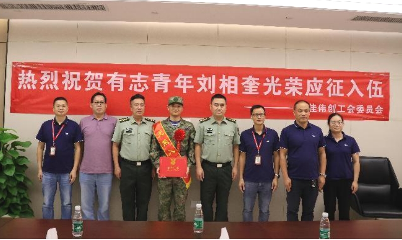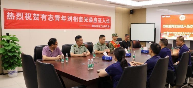 9月11日下午,劉相奎同志應(yīng)征入伍歡送儀式在公司舉行,坪山區(qū)龍?zhí)锝值牢溲b部和竹坑社區(qū)相關(guān)工作人員,我司工會(huì)委員及相關(guān)部門(mén)負(fù)責(zé)人參加歡送儀式。