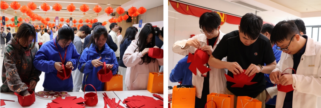 你是一個心靈手巧的人嗎?你的動手能力強嗎?你的創(chuàng)造力十足嗎?“手工DIY”活動區(qū),職工們帶著好奇心紛紛領(lǐng)取手工道具,在工作臺前按工作人員指示,認真地折疊著手提籃,折疊、穿針、撕紙、粘貼……動作從生疏到熟練,眼神從迷茫到恍然大悟,大家互相取經(jīng)、互相幫忙,現(xiàn)場彌漫著一股愉悅的創(chuàng)意氛圍。經(jīng)過職工們自己的巧思和努力,一個個精美的手提籃應運而生,大家收獲了滿滿的幸福感和成就感。
