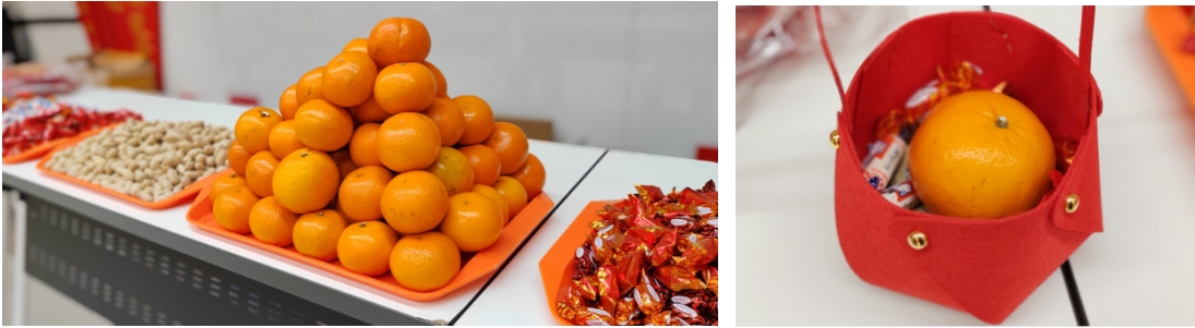 DIY手提籃結(jié)束后,大家提著籃子前往“添福區(qū)”領(lǐng)取“福道”,有大吉大利的“橘子”、好事發(fā)生的“花生”、甜甜蜜蜜的“糖果”,祝愿大家在新的一年好運連連。大家提著裝滿“福道”的籃子喜笑顏開地繼續(xù)參加其他游戲。
