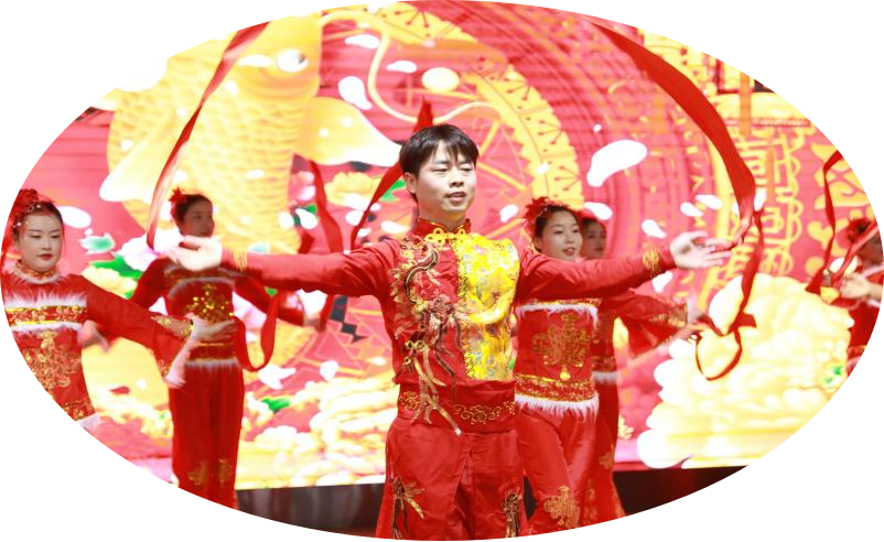 “醒過你的夢呀是新新的春,問過你的神呀是清清的晨,順著太陽扯出條艷艷的紅呀,掛起你那心中美美的燈?!薄堕_門紅》作為開場舞,以整齊劃一的舞蹈動作,熱情洋溢的燦爛笑容為2024年帶來了第一場紅紅火火的喜慶。
