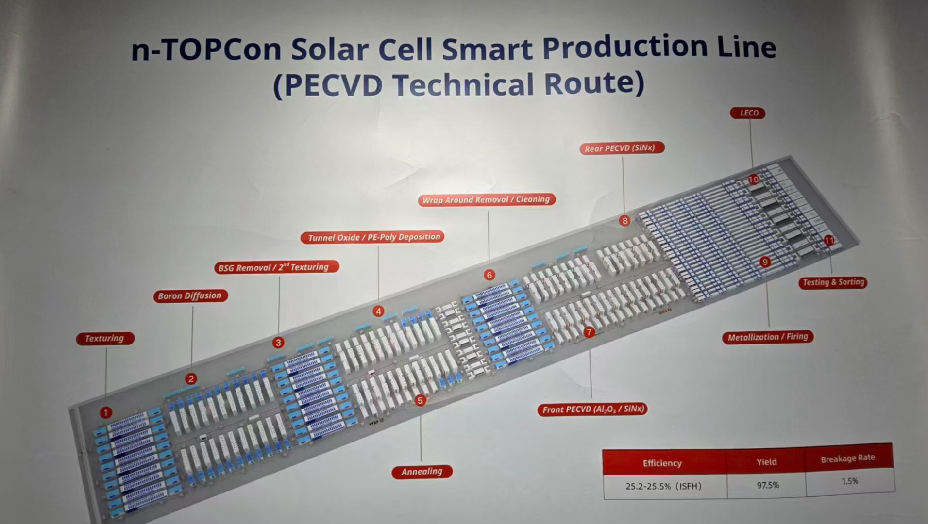 美國國際太陽能展覽會(huì)(RE+)是北美地區(qū)規(guī)模最大、最具影響力的光伏展會(huì)之一。它不僅是全球光伏行業(yè)展示技術(shù)的重要平臺(tái),也是公司探索國際市場(chǎng)尤為重要的世界窗口。本次參展,不僅彰顯公司拓展國際市場(chǎng)戰(zhàn)略的實(shí)踐決心,還向國際展示了公司在光伏領(lǐng)域的硬實(shí)力。展會(huì)現(xiàn)場(chǎng),公司展出了光伏各種技術(shù)路線整線解決方案,公司與相關(guān)美國客戶介紹公司技術(shù)方案及優(yōu)勢(shì),并詳細(xì)講解公司全技術(shù)交鑰匙整線量產(chǎn)裝備解決方案。