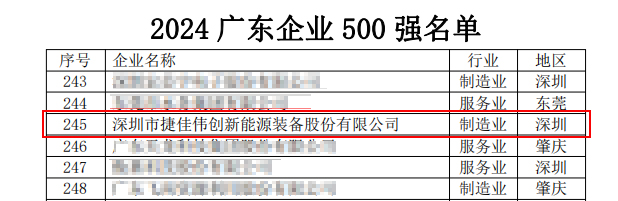 9月20日,廣東省企業(yè)聯(lián)合會、廣東省企業(yè)家協(xié)會發(fā)布2024廣東企業(yè)500強(qiáng)榜單及發(fā)展報(bào)告,捷佳偉創(chuàng)憑借卓越的市場表現(xiàn)和技術(shù)創(chuàng)新能力,榮登榜單第245名,較去年躍升83名,彰顯了公司在行業(yè)內(nèi)的領(lǐng)先地位和強(qiáng)勁的發(fā)展勢頭。