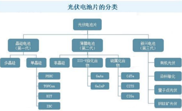 光伏電池片是由單/多晶硅片制成的可以將太陽光能轉(zhuǎn)化為電能的半導(dǎo)體薄片。光伏電池片位于光伏產(chǎn)業(yè)中游,其技術(shù)路線和工藝水平直接影響光伏組件的發(fā)電效率和使用壽命,是光伏發(fā)電系統(tǒng)的核心部件。根據(jù)基體材料的不同,太陽能電池主要分為晶硅電池、薄膜電池和新興電池三大類。從市場(chǎng)應(yīng)用角度來看,晶硅電池因光電轉(zhuǎn)換效率高、工藝成熟、原料儲(chǔ)量豐富等優(yōu)點(diǎn),處于市場(chǎng)主導(dǎo)地位。按照所用硅材料形態(tài)的不同,晶硅電池分為單晶電池和多晶電池,隨著近幾年單晶電池生產(chǎn)技術(shù)的進(jìn)步以及成本的不斷下降,單晶電池性價(jià)比不斷提高,在晶硅電池市場(chǎng)處于主導(dǎo)地位。