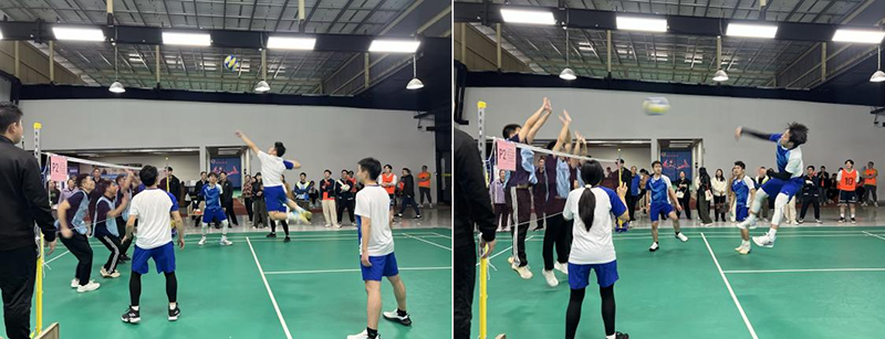 賽場(chǎng)上球員們積極配合,一傳到位,二傳精準(zhǔn),攻手、起跳、扣殺一氣呵成。