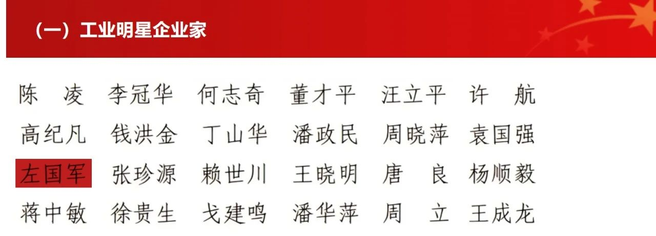 在2024年度新北區(qū)“明星企業(yè)家”名單中,左國(guó)軍先生獲得“卓越企業(yè)家”榮譽(yù)。
