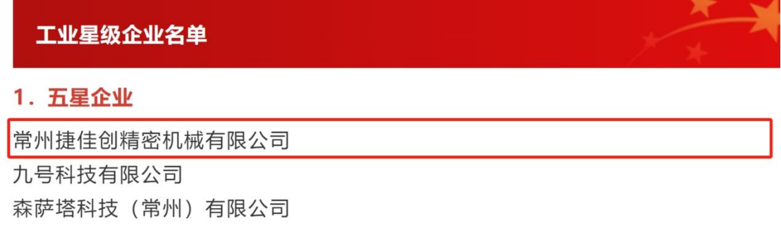 在2024年度常州市“工業(yè)星級(jí)企業(yè)”名單中,公司入選“五星企業(yè)”。