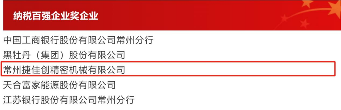在2024年度常州市“納稅百?gòu)?qiáng)企業(yè)獎(jiǎng)”名單中,公司獲得“納稅百?gòu)?qiáng)企業(yè)獎(jiǎng)”。