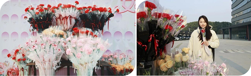 3月7日早晨,在捷佳創(chuàng)的辦公大樓外,一抹不同尋常的亮色正悄悄綻放。當“佳人”們進入這片充滿春意的空間,迎接她們的是一份專屬的驚喜。玫瑰的嬌艷;康乃馨的溫馨;向日葵的燦爛……每一支鮮花都包含著公司對女性員工的祝福?!霸缟鲜盏锦r花的那一刻,感覺整個人都被點亮了!”一位女同事笑著說道。手捧絢麗花束,細嗅馥郁芬芳,笑容在“佳人”們臉頰上綻放。