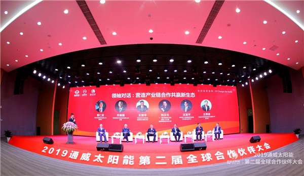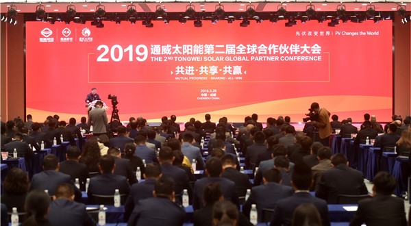 3月26日,2019通威太陽(yáng)能第二屆合作伙伴大會(huì)在通威太陽(yáng)能(成都)有限公司隆重舉行。成都市政協(xié)副主席、雙流區(qū)委書(shū)記韓軼,原國(guó)務(wù)院參事、中國(guó)可再生能源學(xué)會(huì)第七屆、第八屆理事長(zhǎng)石定寰,中國(guó)光伏行業(yè)協(xié)會(huì)副理事長(zhǎng)兼秘書(shū)長(zhǎng)王勃華等領(lǐng)導(dǎo)嘉賓蒞臨,通威集團(tuán)董事局劉漢元主席、禚玉嬌總裁,通威太陽(yáng)能董事長(zhǎng)謝毅等通威高層出席,近百家全球頂級(jí)光伏企業(yè)精英300余人參加了本次大會(huì)。