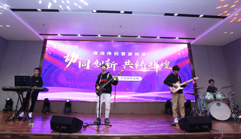 晚宴設(shè)置了沙畫(huà)表演、樂(lè)隊(duì)演唱、小提琴伴奏等環(huán)節(jié),其中的沙畫(huà)表演環(huán)節(jié)一幕幕還原捷佳偉創(chuàng)16年的發(fā)展歷程,令在座的每個(gè)人為之動(dòng)容。從艱辛創(chuàng)業(yè)到廠房搬遷,從設(shè)備研發(fā)到設(shè)備量產(chǎn),從國(guó)內(nèi)業(yè)務(wù)到海外市場(chǎng),從小規(guī)模公司到上市企業(yè)……捷佳偉創(chuàng)以迎難而上、永不言敗的拼搏精神不斷揚(yáng)帆起航,激勵(lì)著捷佳偉創(chuàng)人奮斗、向前。