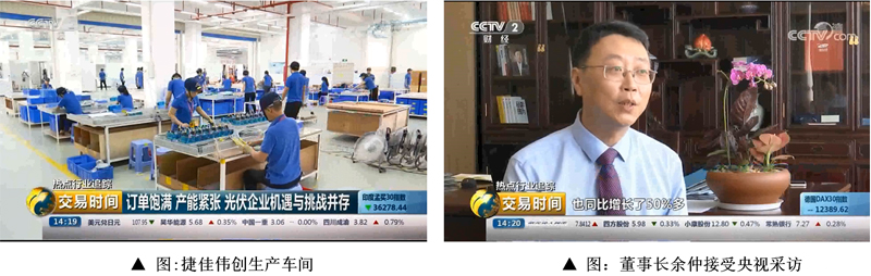 9月19日,央視財經(jīng)頻道《交易時間》欄目報道捷佳偉創(chuàng)。欄目通過“光伏企業(yè)中報業(yè)績亮眼 行業(yè)供需拐點或?qū)⒅痢?、“光伏發(fā)電成本持續(xù)降低 平價上網(wǎng)時代即將來臨”、“訂單飽滿 產(chǎn)能緊張 光伏企業(yè)機遇與挑戰(zhàn)并存”、“建筑屋頂發(fā)電受追捧 光伏行業(yè)發(fā)展前景廣闊”四個主題的報道,以我司為范本,層層遞進解析中國光伏產(chǎn)業(yè)發(fā)展現(xiàn)狀,展望光伏產(chǎn)業(yè)未來發(fā)展前景,對中國光伏產(chǎn)業(yè)的發(fā)展表達了充分信心。