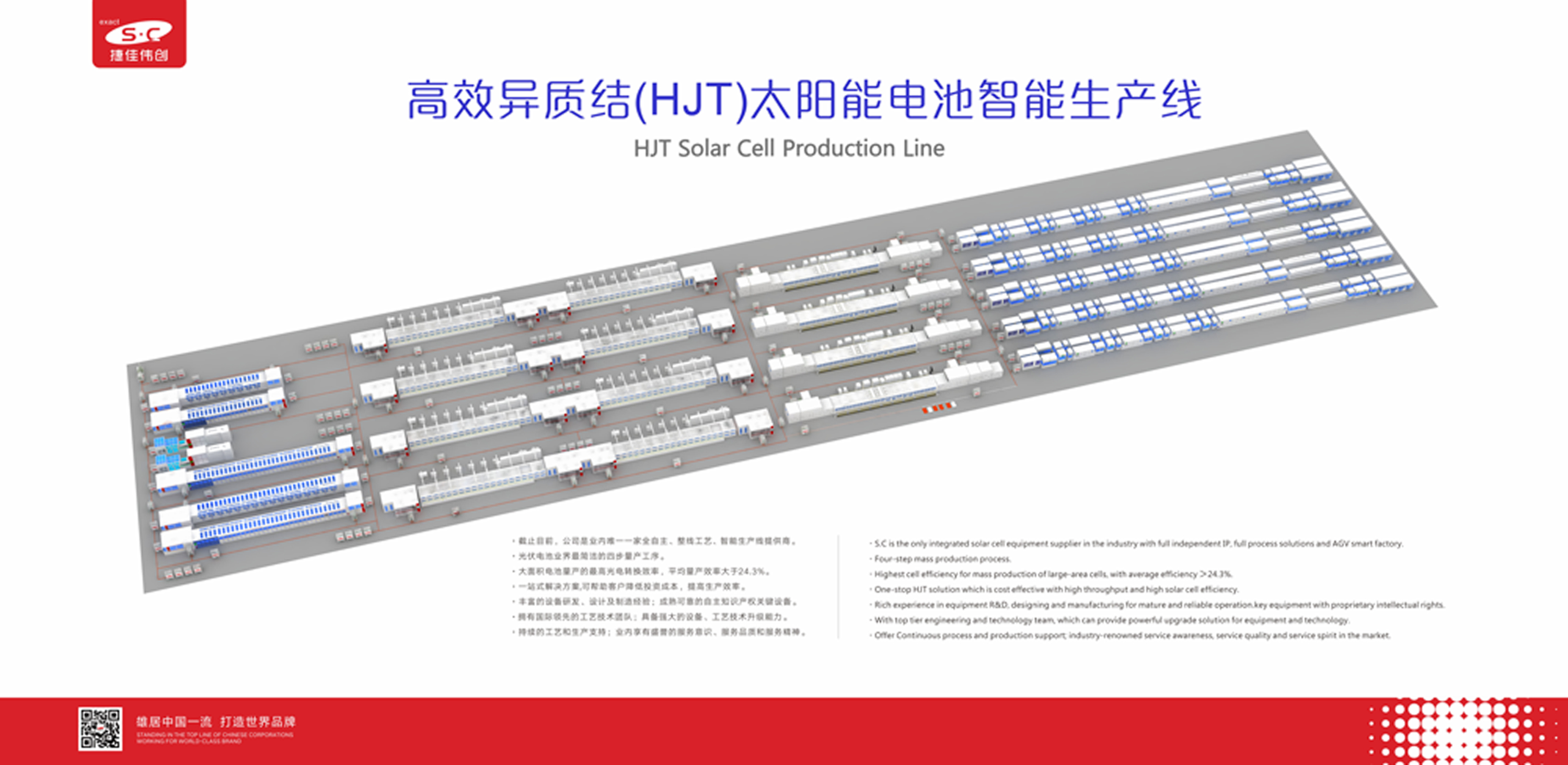 On the exhibition, with the theme of “Standing in the Top Line of Chinese Corporations, Working for the World-class Brand”, S.C displayed its latest products in the form of posters combined with exhibition machines. It also demonstrated the full-scene smart manufacturing solution of super high efficiency heterojunction (HJT) cells and created a new ear of smart manufacturing of HJT solar cells.
