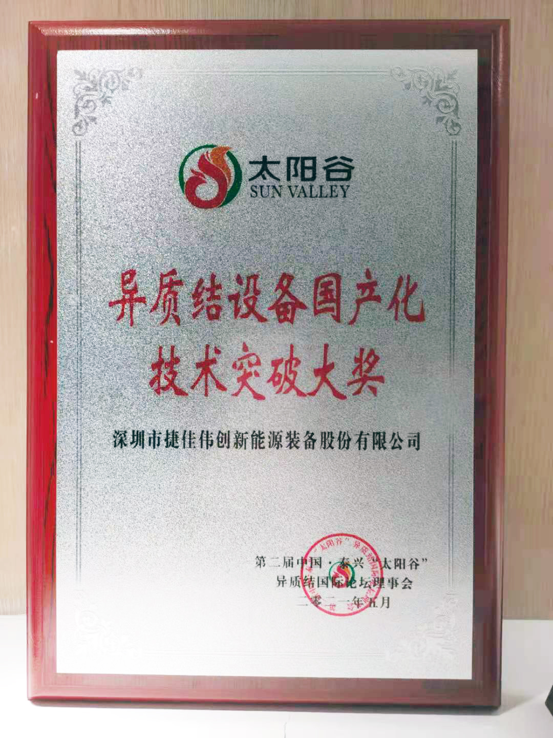 During the conference, S.C received a good news that in the “HJT Industry Innovation Award”session of the “Sun Valley” International Forum, S.C won the “HJT Equipment Localization Technology Breakthrough Award”.