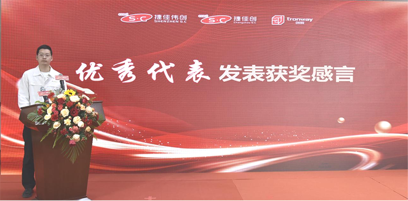 After that, the representative of Shenzhen excellent managers, Yu Haitao, and the representative of Changzhou excellent teams came up to the stage and delivered their acceptance speeches, in which they shared their growth journeys and proven strategies—how they improved their competence and pursued excellence; discovered and solved problems; developed equipment and upgraded technologies; managed projects and did the customer service. Their sharing stood as a testimony to the spirit of bold exploration and pushing boundaries. Their words proved their passion to their job, gratitude to their teams and their visions of the future, all of which will encourage each people of S.C to work harder.