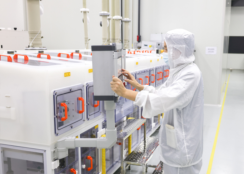 S.C's Perovskite Solar Cell Pilot Line serves as an innovative verification platform for self-developed manufacturing equipment of PSC & tandem cells, covering an area of approx. 1,000m2.It verifies the relevant PSC equipment developed by our various business divisions and fully configured with personnel and operated in accordance with the requirements of mass production. With more than 20 sets of related core process equipment on-site, including slot die coater(for TCO glass, crystalline silicon and other substrates), co-evaporator , laser scriber, PVD, RPD, ALD and so on. All the equipment is independently designed and manufactured by S.C, covering all process steps for the production of single-junction PSC cells & PSC/Si tandem cells, with fully independent intellectual property rights. With an ultra-clean room in pilot line, in which the temperature, humidity and cleanliness are precisely controlled and an integrated wafer transfer chamber to connect the cleanroom with the external areas, which can effectively minimize the contact between the cells and the external environment.This pilot line has innovatively developed integrated mass production equipment capable of depositing multiple thin-film layers within a single processing equipment, saving plant space.Additionally, the pilot line is supported by a specialized R&D team dedicated to developing perovskite precursor solutions and critical materials tailored to the mass production requirements of PSC cells, as well as R&D of preparation process of related thin films. |