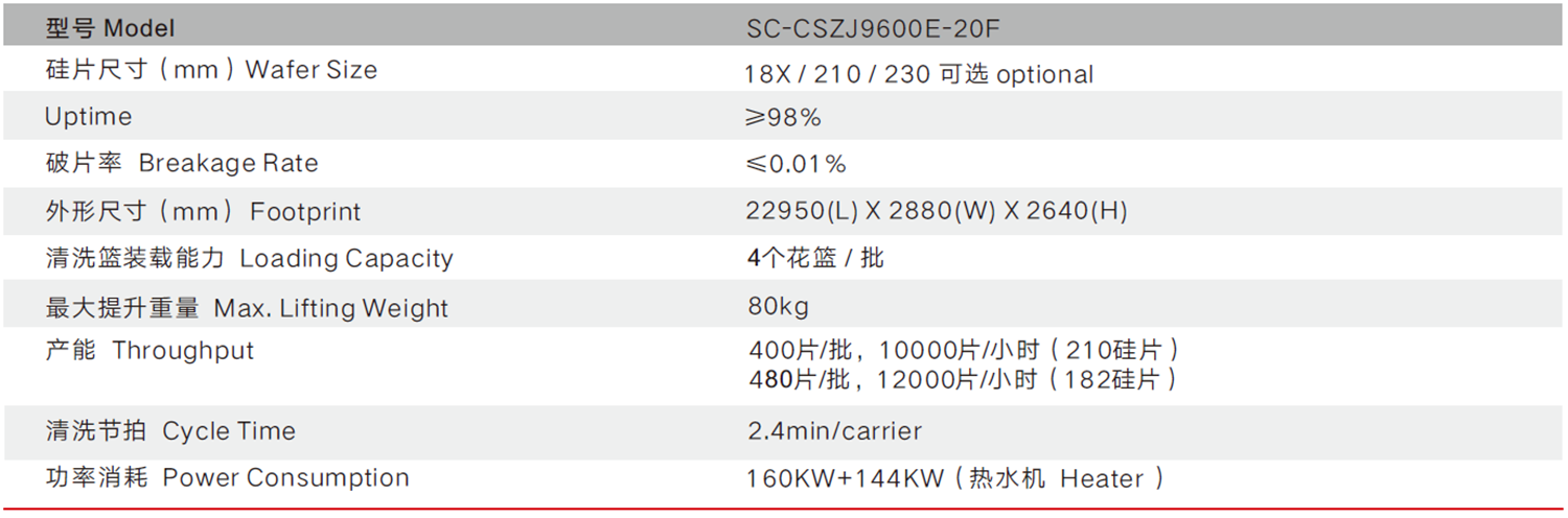 Throughput: 400pcs/batch, 9600pcs/h(210mm wafer),480pcs/batch, 12000pcs/h (182mm wafer).
