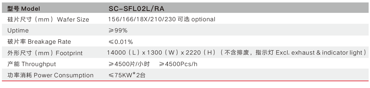 2、大產(chǎn)能:匹配絲印工序產(chǎn)能,CT≤0.80秒,基于硅片尺寸M10(18X±0.5mm*18X±0.5mm)。